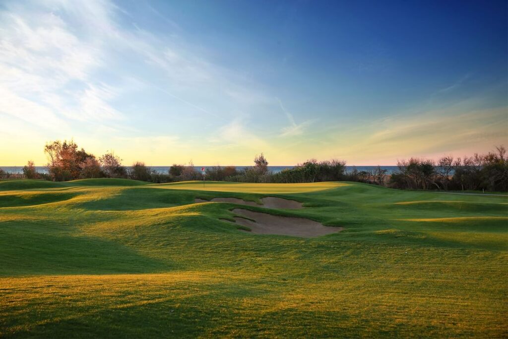 Viele Abschläge befinden sich auf der Spitze der Dünen, um Ihnen einen perfekten Blick über den Platz und auf das schneebedeckte Taurusgebirge und das Mittelmeer zu geben. Der Platz bietet vier verschiedene Abschläge, so dass Spieler unterschiedlichen Alters und Könnens die Möglichkeit haben, sich angemessen herauszufordern. Auch bei späteren Startzeiten kann bei Flutlicht auf den zweiten 9 Loch gespielt werden.