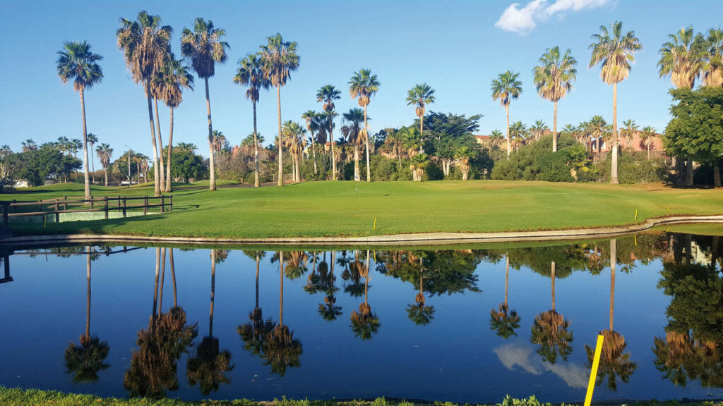 Die wunderschöne 27-Loch-Anlage, die sich in Flughafennähe befindet ist landschaftlich eine kleine Oase mit Palmen, riesigen Kakteen, breiten Fairways und großen Grüns. Mit schwarzem Lavasand gefüllte Bunker erfordern besondere Präzision. Ursprünglich wurde Golf del Sur von Pepe Gancedo entworfen, in 2005 dann von Manuel Piñero umgestaltet.