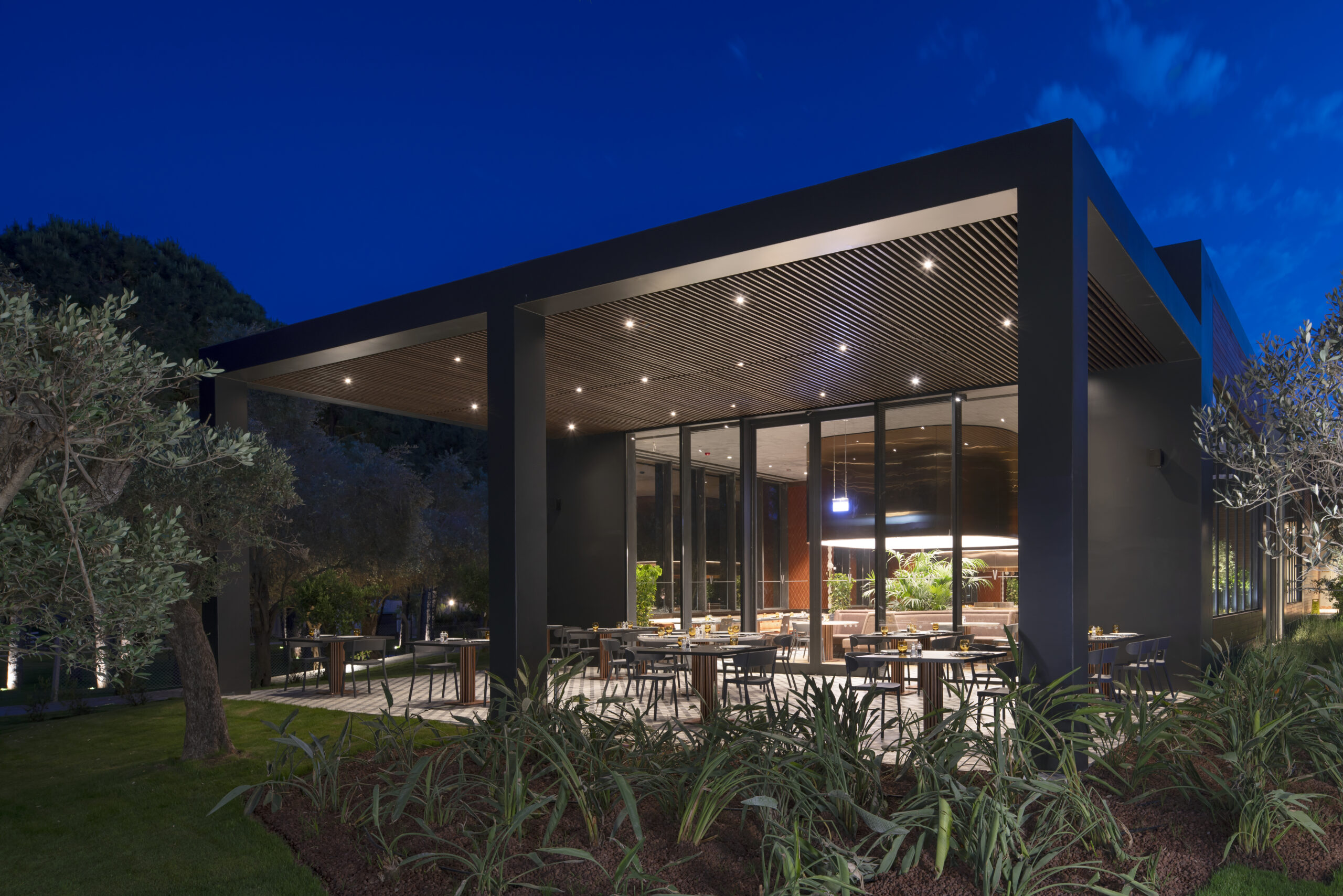 Die weitläufige Anlage besteht aus einem mehrstöckigen Hauptgebäude, 2 Nebengebäuden und mehreren zweistöckigen Bungalows, umrahmt von einem herrlichen Pinienwald. Zur Einrichtung gehören ein Empfangsbereich mit Réception, WLAN (gratis); 2 Buffet-Hauptrestaurants (1 davon nur für Erwachsene), 7 A-la-carte-Restaurants (türkische, italienische, griechische, mexikanische, chinesische und japanische Küche, Steaks), 3 Snackrestaurants.