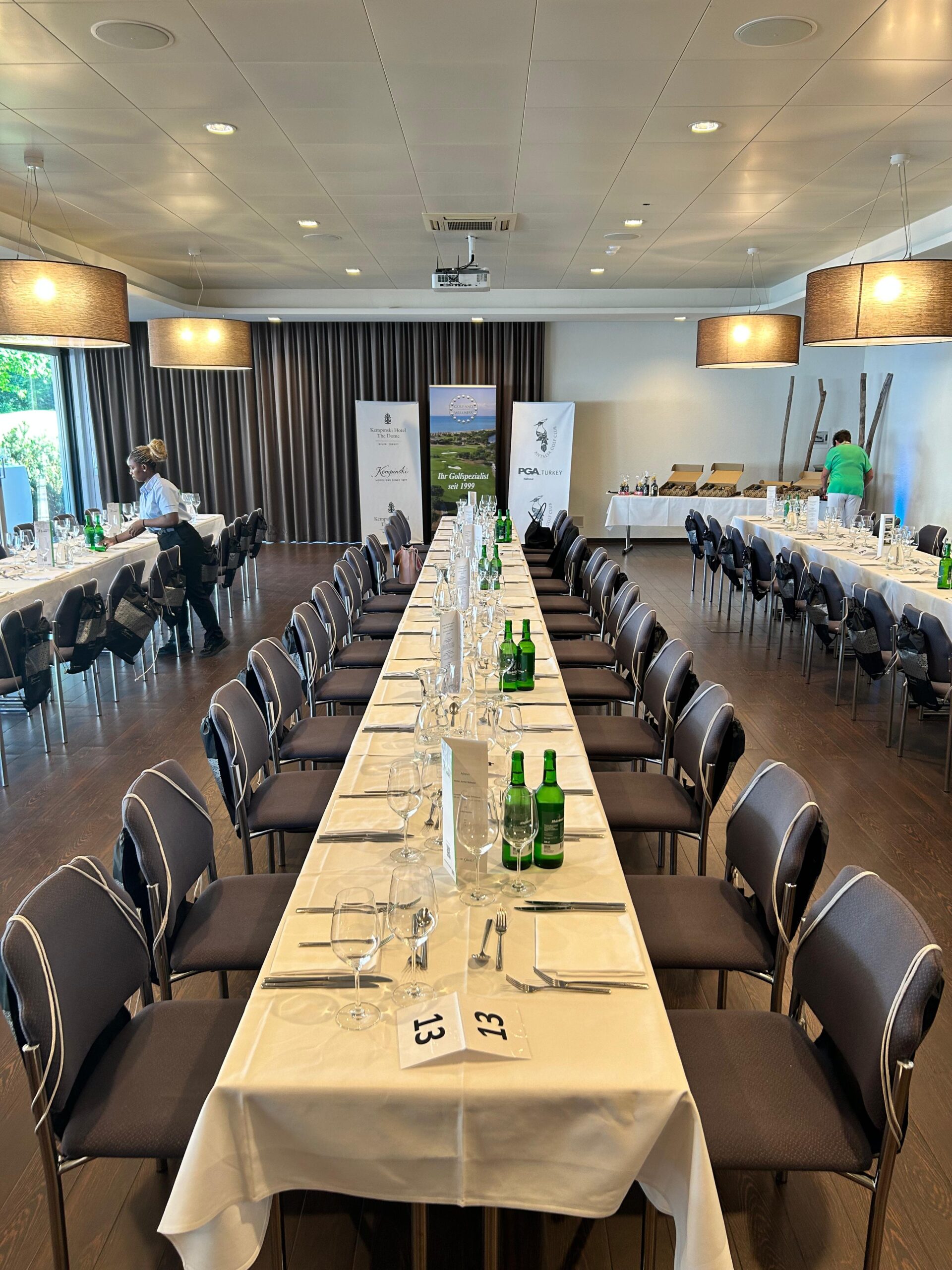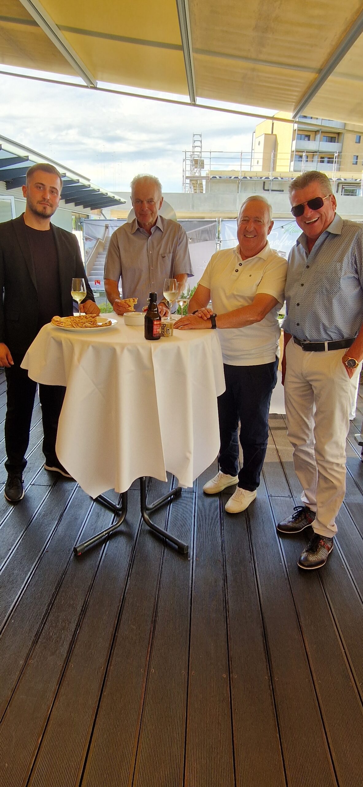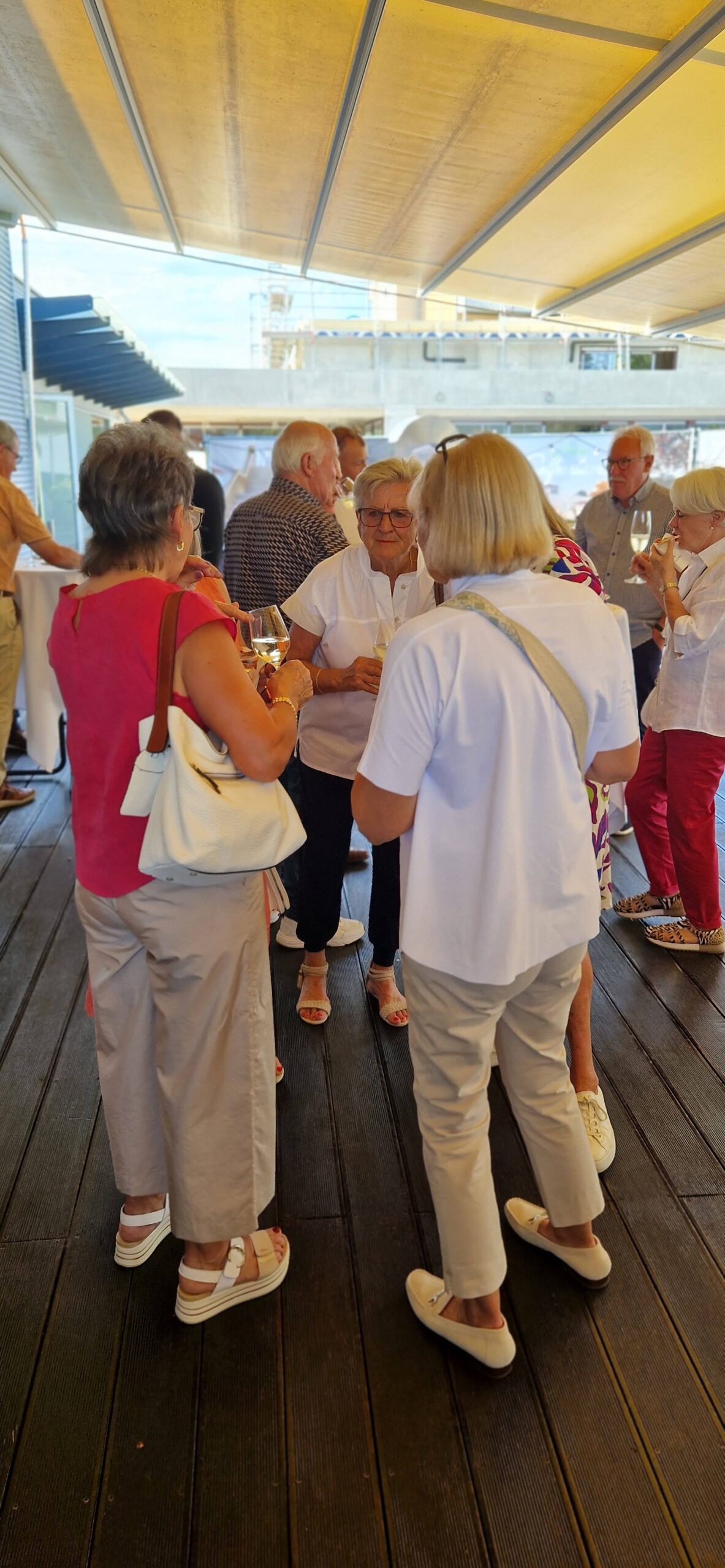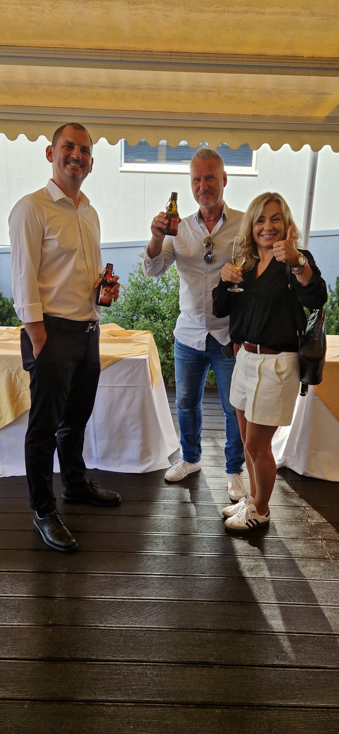 Pünktlich um 18 Uhr durften wir vor dem Pavillon das vom Reisebüro Golf and Wellness in Egg gesponserte reichhaltige Apéro geniessen. Im Nullkommanichts hatte jede und jeder ein Glas in der Hand und der Lärmpegel stieg von Minute zu Minute oder von Glas zu Glas! Captain Erika verlangte das Wort und stellte unsere heutigen Sponsoren vor. Sofort kam sie ins Schwärmen. Denn Erika als ¨Hans-Dampf in allen Gassen¨ resp. mit Golfbeziehungen weit über die Landesgrenzen hinaus, haben wir das heutige grosszügige Sponsoring zu verdanken. Unmissverständlich liess sie uns wissen, dass ¨ihr Freund¨ Kayhan Senkal sie schon seit vielen Jahren in der Ferienplanung betreut und auch sonst als Destinations- und Marketing Manager von Golf and Wellness für das Wohl der Gäste besorgt ist. Das Reisebüro-Team nahm sich ebenfalls Zeit, persönlich in Entfelden zu erscheinen. Dies sind: