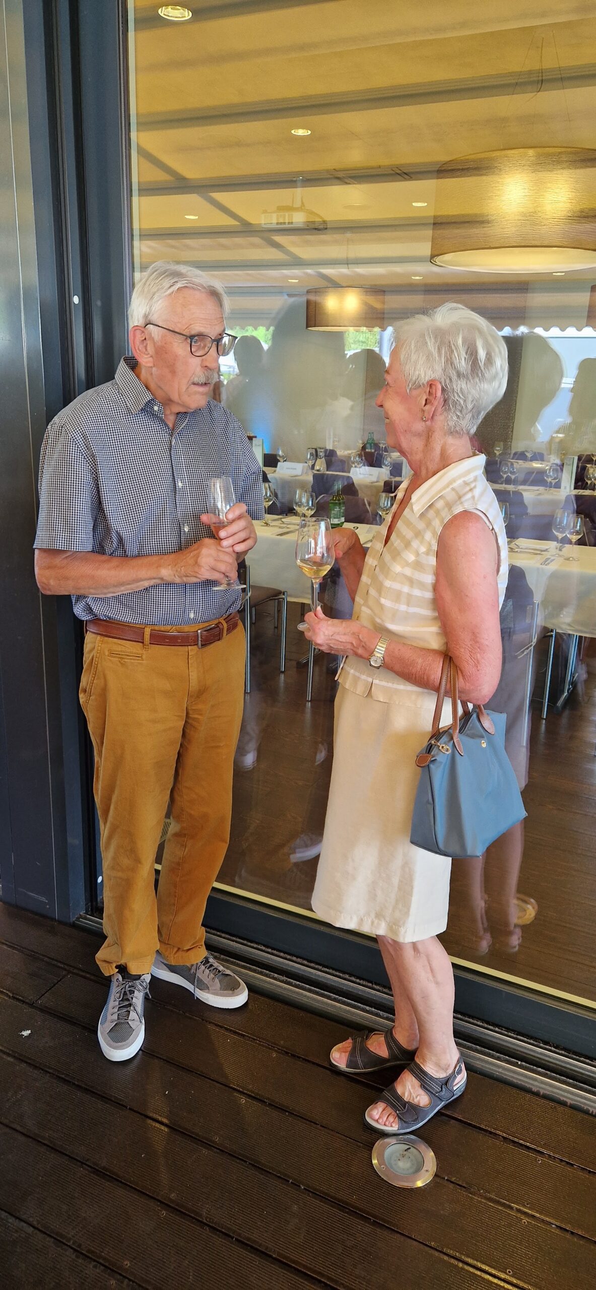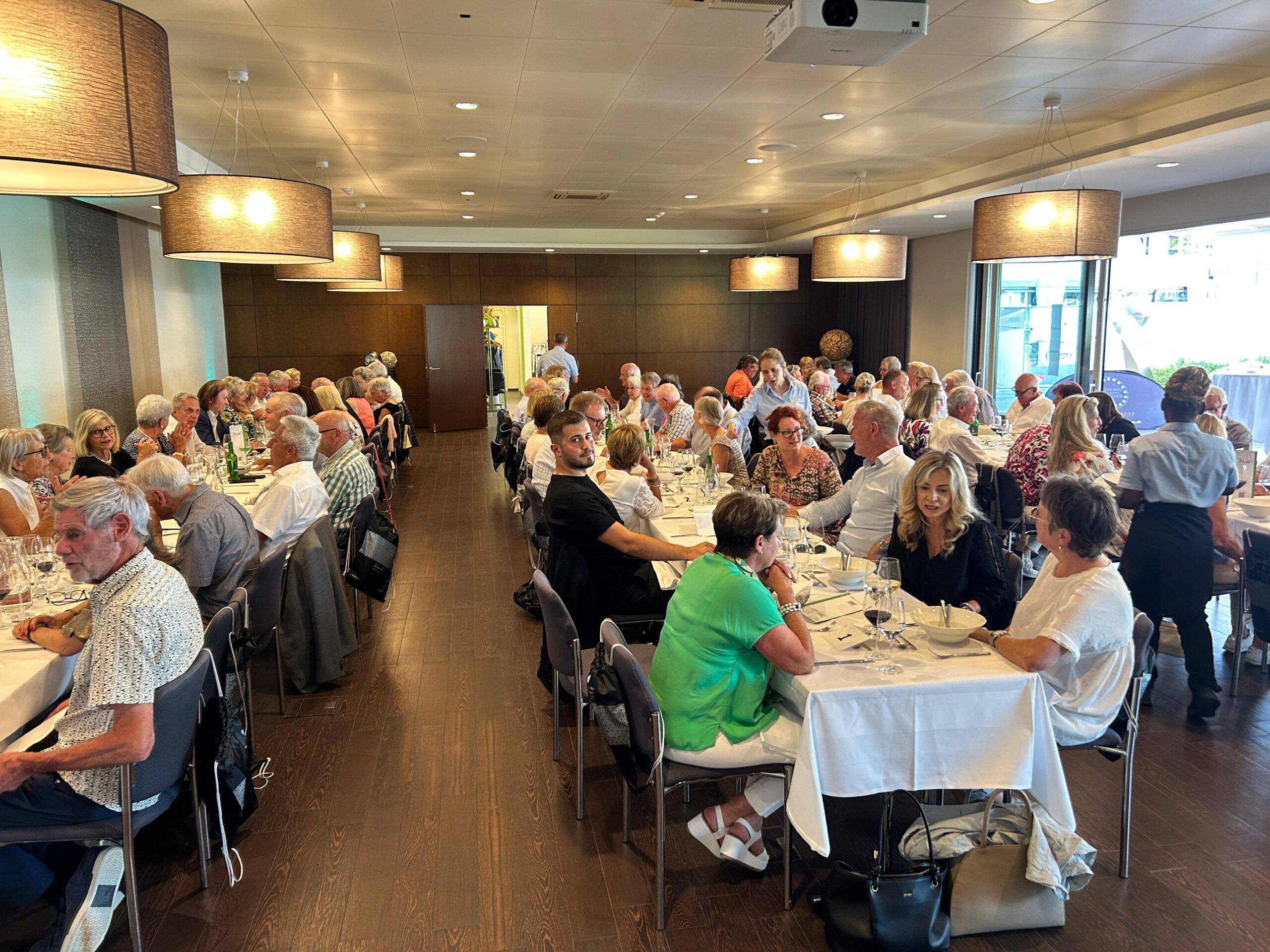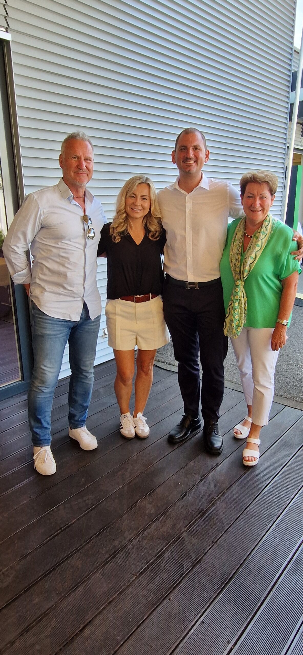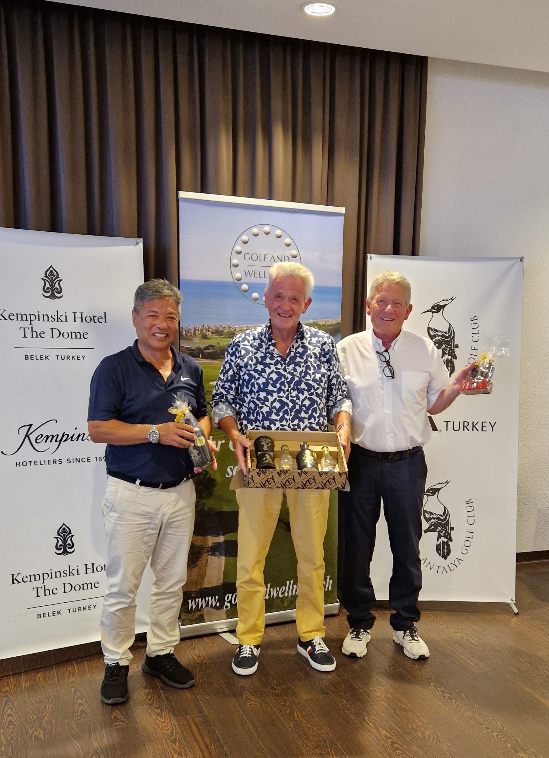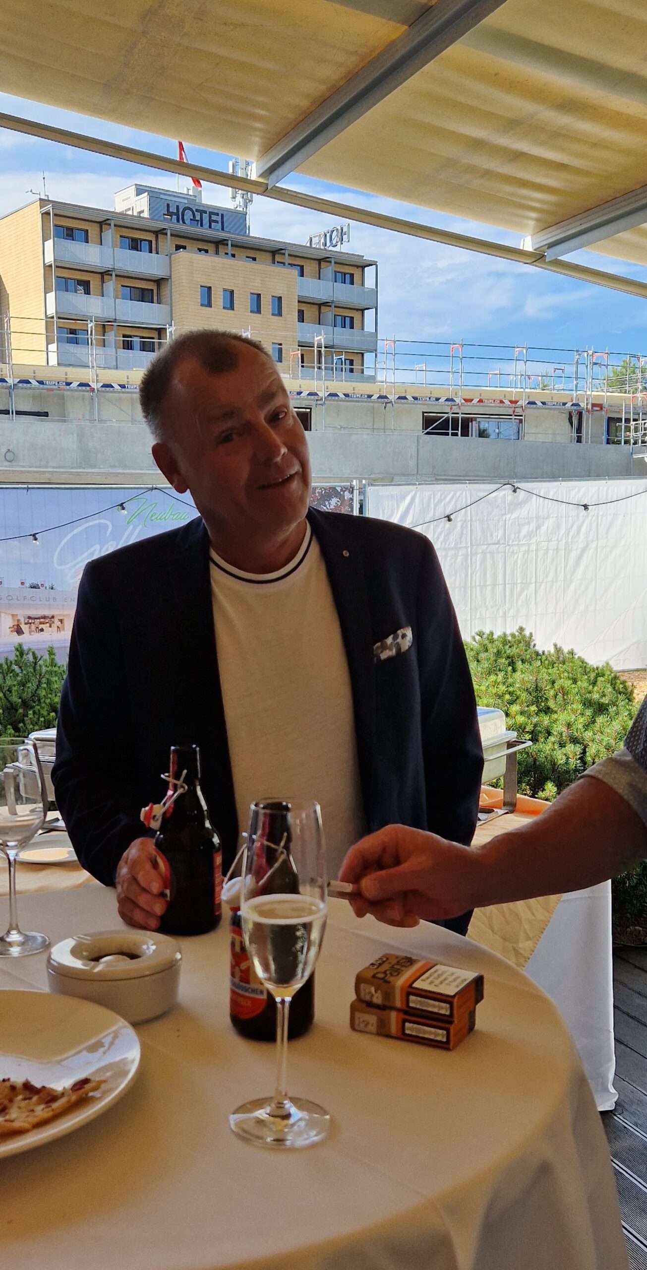 Pünktlich um 18 Uhr durften wir vor dem Pavillon das vom Reisebüro Golf and Wellness in Egg gesponserte reichhaltige Apéro geniessen. Im Nullkommanichts hatte jede und jeder ein Glas in der Hand und der Lärmpegel stieg von Minute zu Minute oder von Glas zu Glas! Captain Erika verlangte das Wort und stellte unsere heutigen Sponsoren vor. Sofort kam sie ins Schwärmen. Denn Erika als ¨Hans-Dampf in allen Gassen¨ resp. mit Golfbeziehungen weit über die Landesgrenzen hinaus, haben wir das heutige grosszügige Sponsoring zu verdanken. Unmissverständlich liess sie uns wissen, dass ¨ihr Freund¨ Kayhan Senkal sie schon seit vielen Jahren in der Ferienplanung betreut und auch sonst als Destinations- und Marketing Manager von Golf and Wellness für das Wohl der Gäste besorgt ist. Das Reisebüro-Team nahm sich ebenfalls Zeit, persönlich in Entfelden zu erscheinen. Dies sind:
